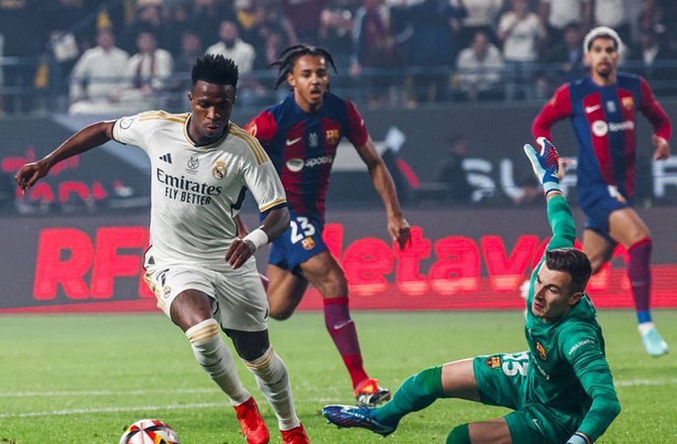 وشهد الشوط الأول إثارة كبيرة، بعدما ألغى الحكم ركلة جزاء كانت قد احتُسبت لصالح ريال مدريد عن طريق لاعبه فينيسيوس جونيور، عقب الرجوع إلى تقنية الفيديو (VAR)، وسط اعتراضات من لاعبي الفريق الملكي.